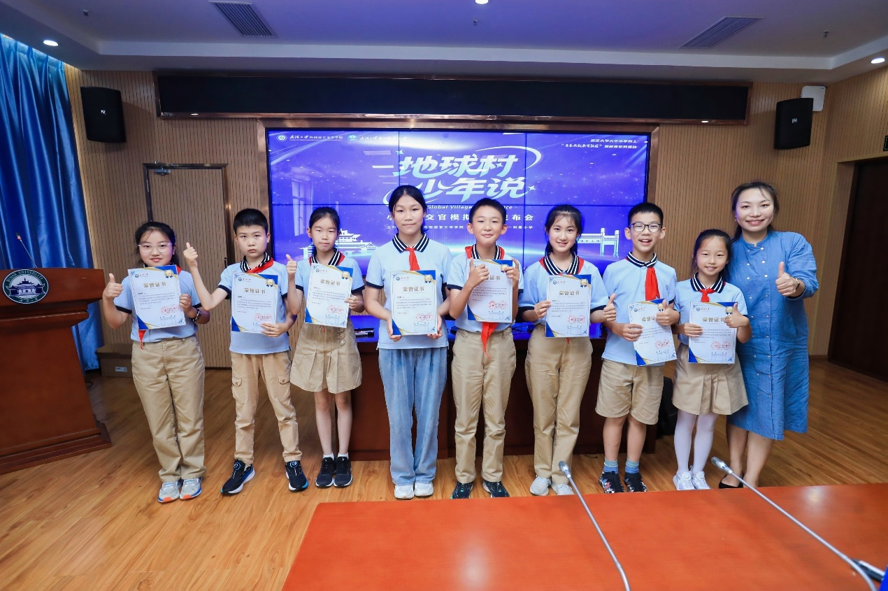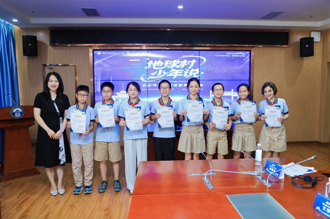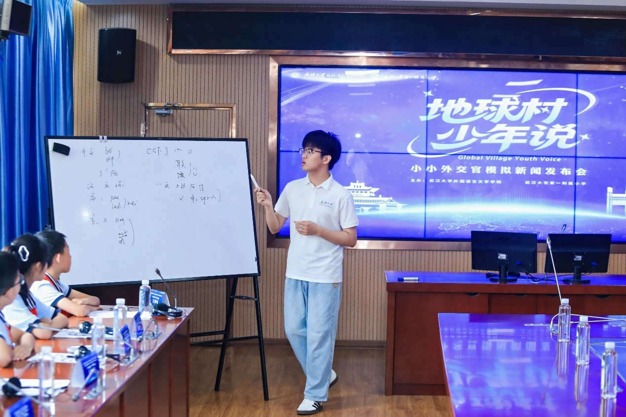 第一附属小学副校长白兰、学工处副主任申盼盼,武汉大学校团委宣传办公室副主任韩璐,外国语言文学学院党委副书记刘涛、副院长罗菁、团委书记刘迪等领导及相关部门负责人、教师代表以及学生代表共40余人参与此次模拟新闻发布会。