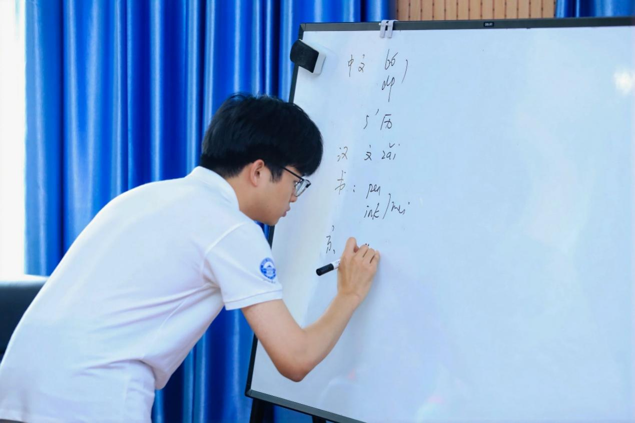 活动伊始,武汉大学口译队成员王天然为同学们进行了交替传译示范,并深入讲解了口译笔记法的技巧与意义。他强调:“笔记法是口译员的重要工具,通过符号、中文核心字和英文缩写,可以有效提升记忆与表达能力。”随后,他通过实例演示,让同学们对笔记法有了更直观的认识。