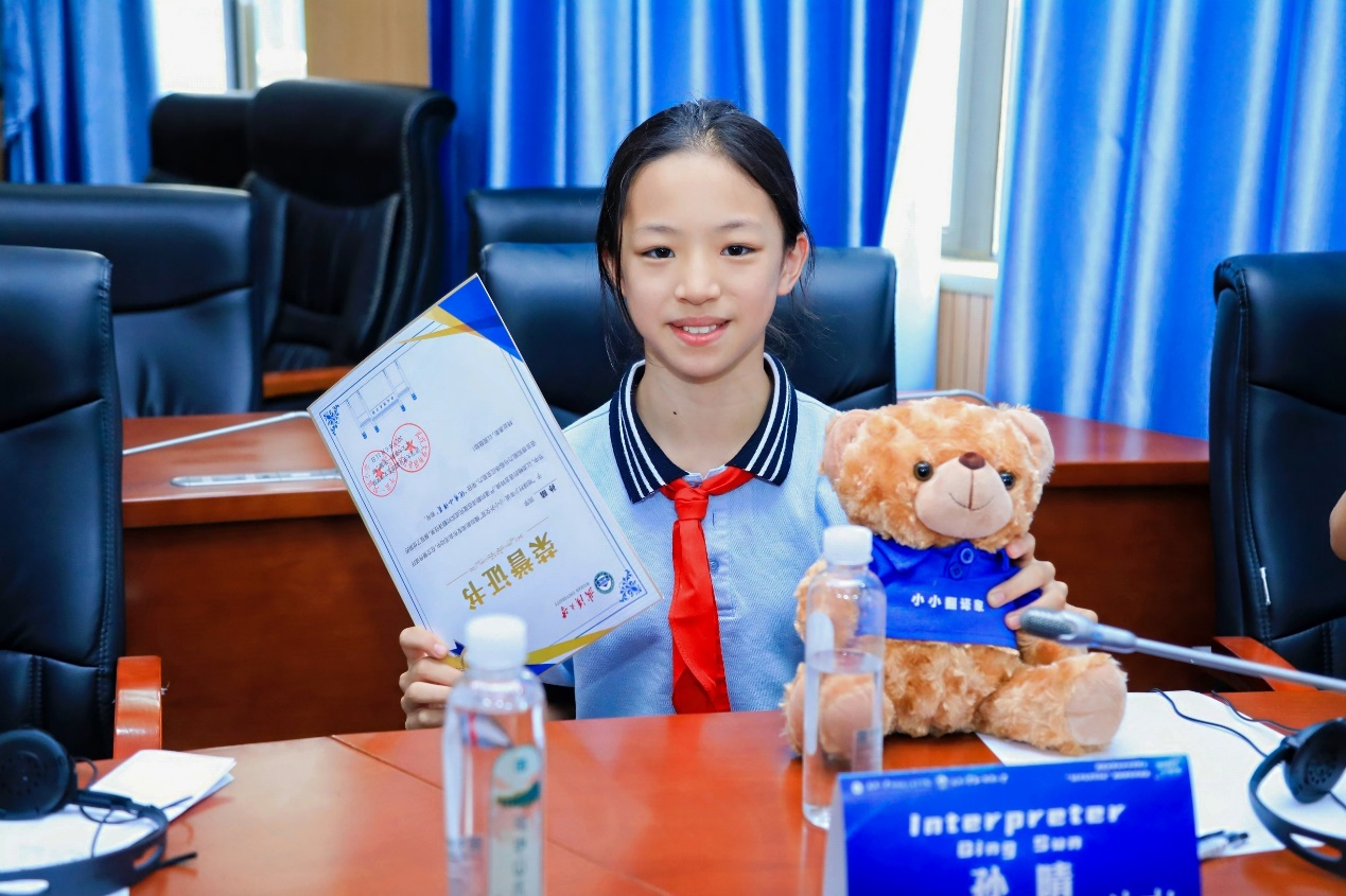 经过激烈角逐,活动最终评选出优秀个人奖项。王骏霖、程语夕等同学荣获“优秀新闻发言人”称号;赵蕴琳、兰国睿等同学获评“优秀记者”;李梓鎏、黄晓烨等同学则荣获“优秀译员”称号。颁奖环节结束后,志愿者们为所有参与活动的小同学们发放了定制纪念品小熊,现场洋溢着喜悦与成就。