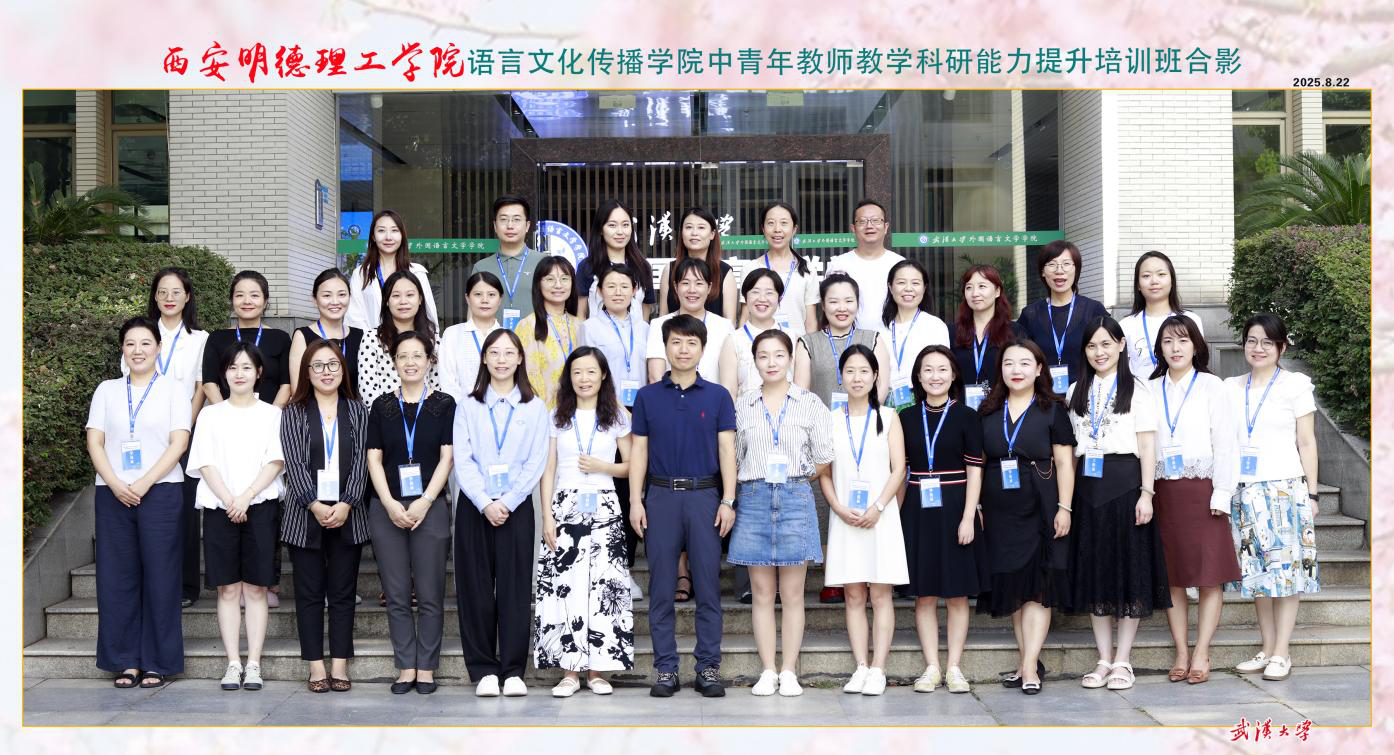 8月21日至25日,西安明德理工学院语言文化传播学院中青年教师教学科研能力提升培训班在武汉大学顺利举办。来自西安明德理工学院语言文化传播学院的30名教师参与培训。