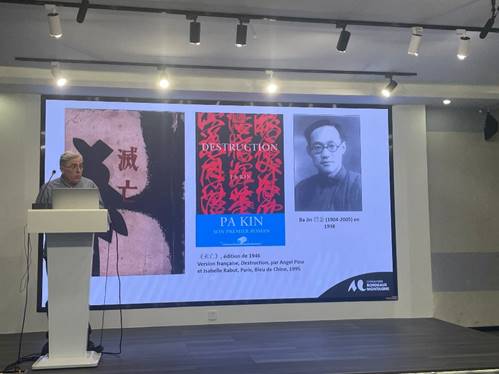 (通讯员:李高欣)2025 年 5 月 14 日下午2点,法国波尔多蒙田大学(Université Bordeaux Montaigne)教授、著名汉学家、法国巴金研究权威专家安必诺(Angel Pino)应邀在星空网页版主讲“中国作家巴金与法国”。此次活动由武汉大学“跨文化交流中的经典文本诠释与话语流变”青年学术团队、星空网页版、武汉大学文明对话高等研究院联合主办。讲座由外国语言文学学院赵鸣副教授主持,青年团队相关专家学者及外语学院师生参与了本次学术活动,法语系 2022级本科生李高欣担任现场翻译。