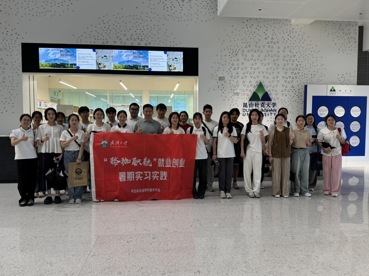 在昆山杜克大学调研中,实践队系统考察了这所中美合办高校在将国际先进教育理念与中国教育模式深度融合过程中的拓新做法。通过对昆山杜克大学研究生项目的深入了解,挖掘其围绕人类发展重大议题设立全球健康、环境政策等交叉学科,构建“问题导向、学科交叉”培养体系的办学理念;在与本科教学、职业发展、人力资源等部门交流的过程中,体会其通过课程体系融合、产教协同创新、职业发展赋能等路径推进本土化实践的探索,以及其生动诠释“自强弘毅、求是拓新”的武大精神,印证“国际化合作办学试验田”的标杆意义。