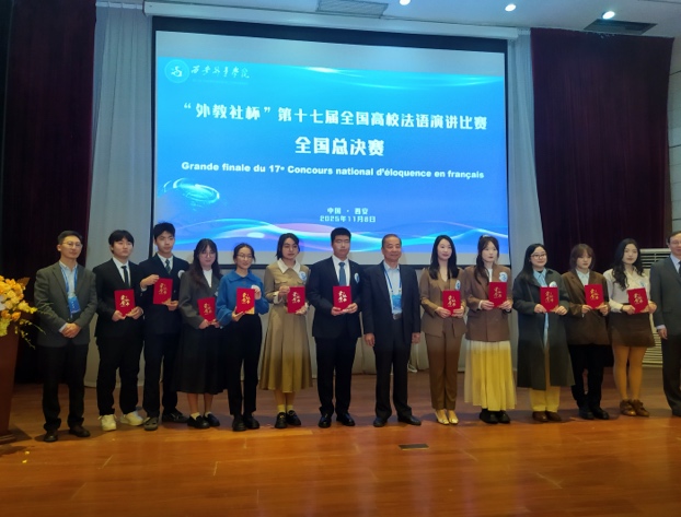 (通讯员:张瑞、苏昉)近日,由上海外语教育出版社主办、西安外事学院承办的“外教社杯”第十七届全国高校法语演讲比赛总决赛圆满落幕。经过校赛、初赛、总决赛三轮激烈角逐,我院法语系2022级本科生张瑞同学凭借扎实的语言功底、深刻的思辨能力、稳定的现场发挥和出色的综合素养,从全国顶尖选手中脱颖而出,获得全国总决赛第三名(二等奖)的优异成绩。
