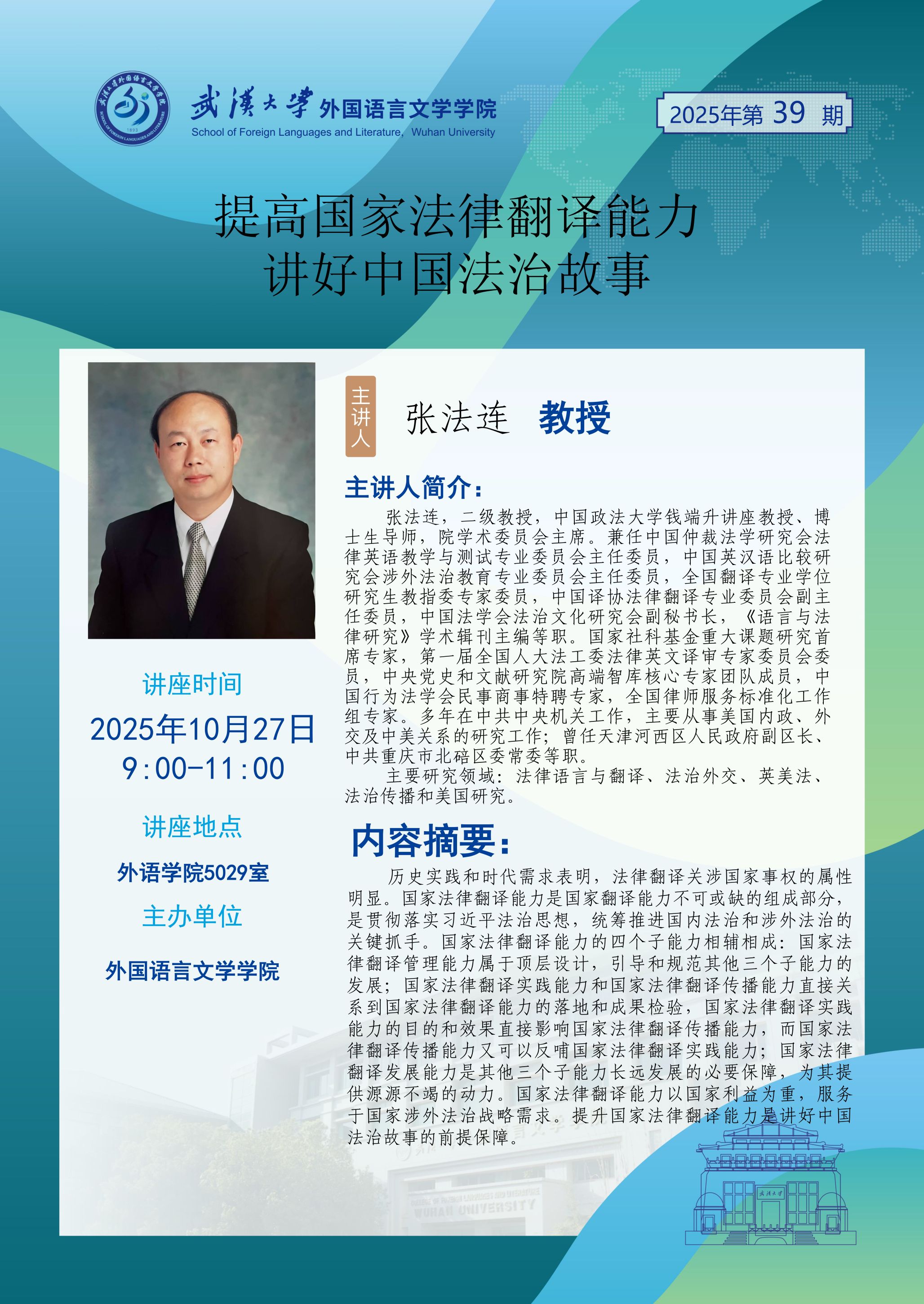 张法连:提高国家法律翻译能力 讲好中国法治故事